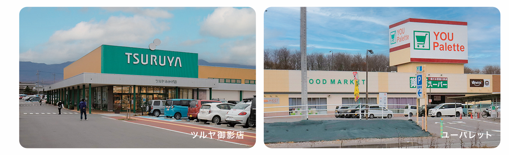 業務スーパー、ドラッグストア、100円ショップなどが揃うユーパレット徒歩圏内