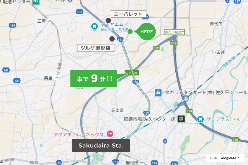 北陸新幹線「佐久平」駅まで車で約9分佐久北ICまではわずか3分