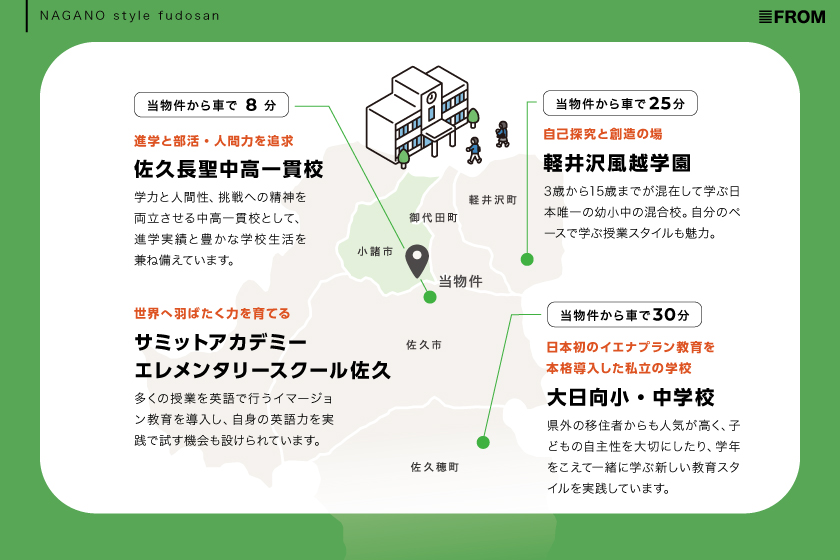 周辺には、全国的にも有名な佐久長聖中高等一貫校をはじめとする教育機関も充実!